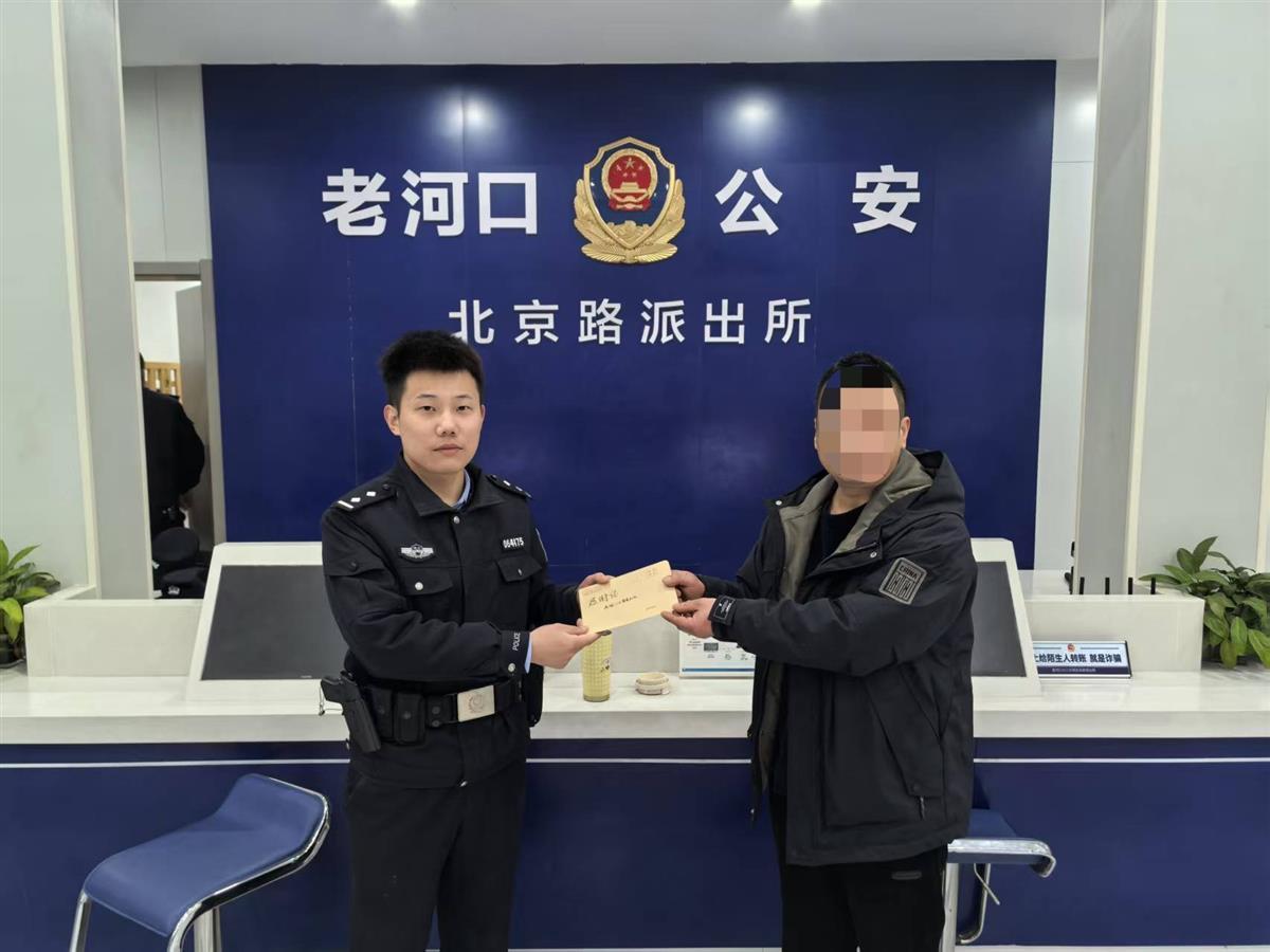 2月5日,湖北老河口市公安局光化派出所收到一封感谢信,以表达对民警帮助其找到手机的感激之情。