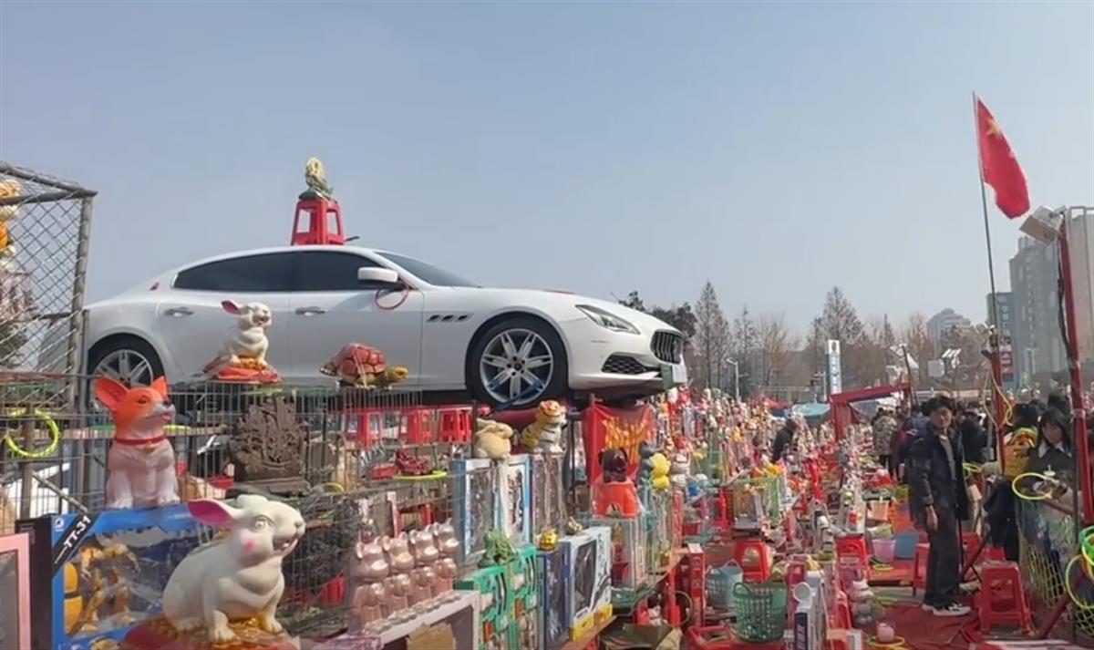 街头套圈可以套到豪车玛莎拉蒂?近日,在河南商丘柘城县,一个套圈摊位吸引不少游客前来打卡和碰运气。2月6日,摊位老板告诉极目新闻记者,这是一辆二手的玛莎拉蒂,专为套圈而买,游客套中车上摆件就可将车开走。