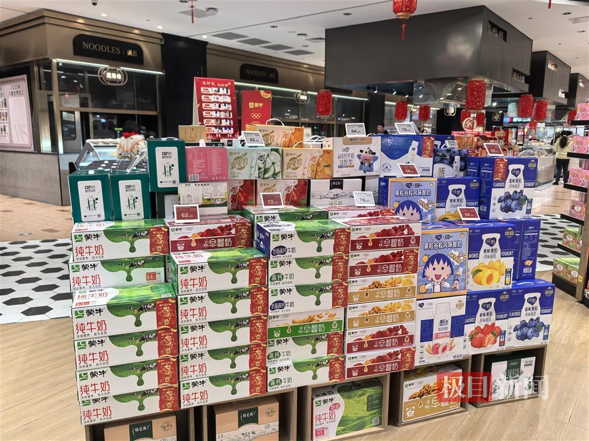 常温奶礼盒降价幅度不明显,多维持原价或小幅降价(极目新闻记者石倩摄)