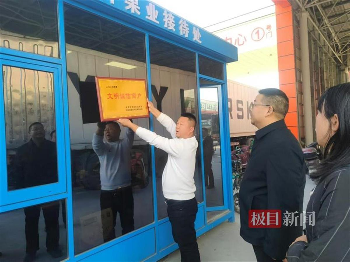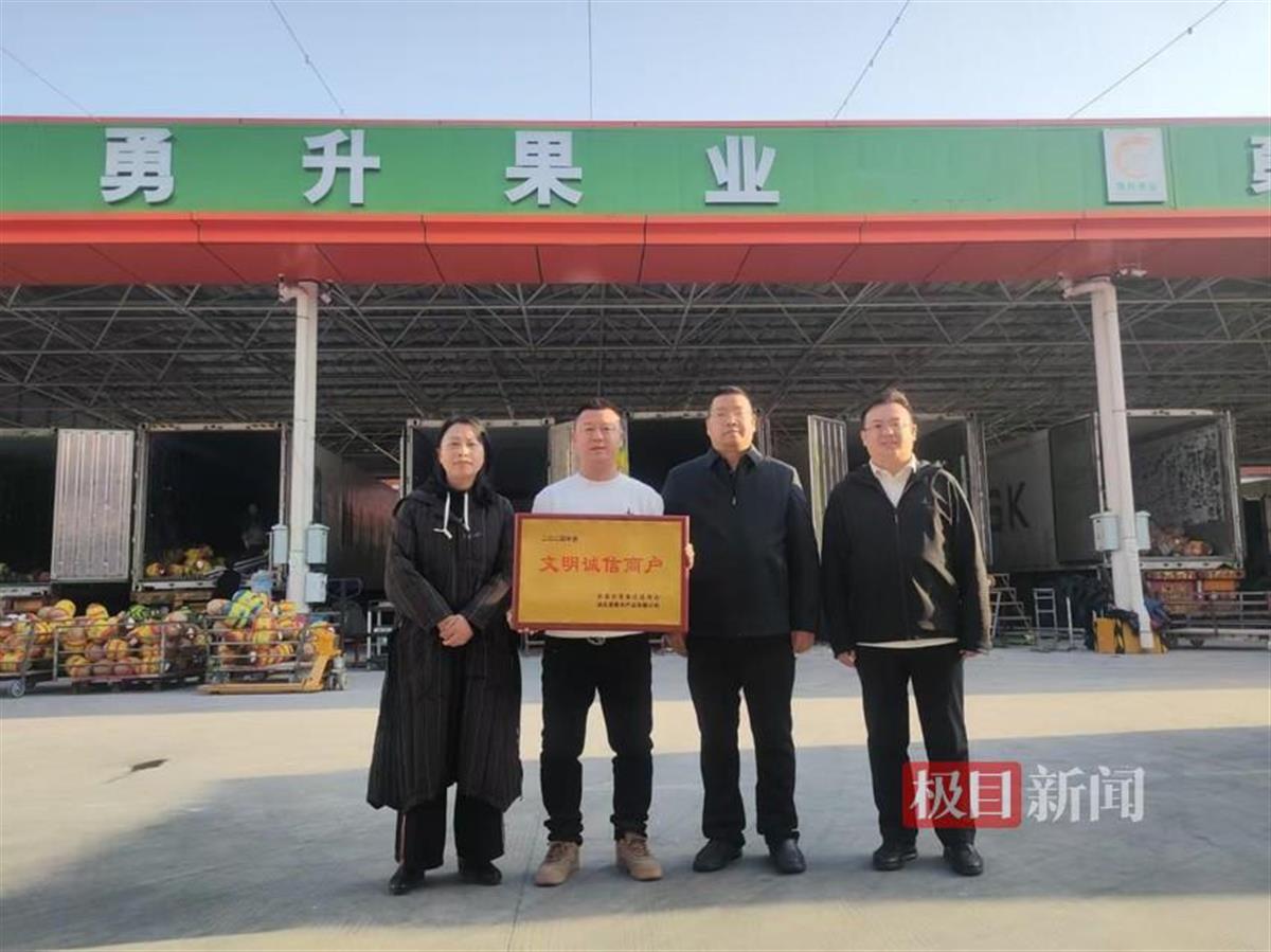 “能被评为‘文明诚信经营户’,真的很开心,虽说只是个称号,但顾客在我的档口,看到这块牌子,对我们来说也是一种宣传,我要把它挂在最显眼的地方。”日前,在湖北省孝感市首衡城,湖北勇升果业负责人李勇接过“文明诚信经营户”牌匾时激动地说,今后会本着诚信经营的理念,继续为消费者提供更加优质新鲜的水果。