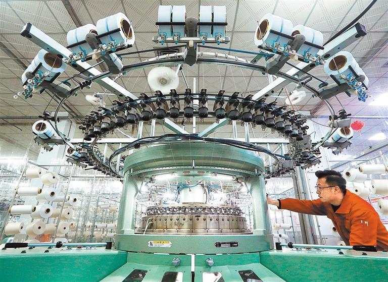 2月5日,山东青岛即墨区即发集团有限公司的员工在生产面料。梁孝鹏摄(中经视觉)