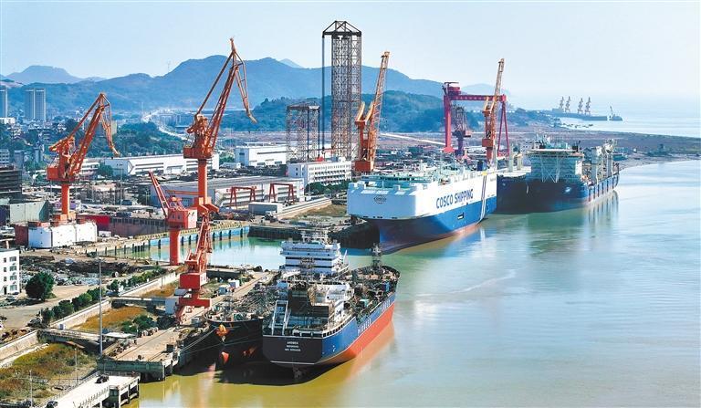 2月5日,福建福州连江县一造船企业,多艘大型船舶在加紧建造。王旺旺摄(中经视觉)
