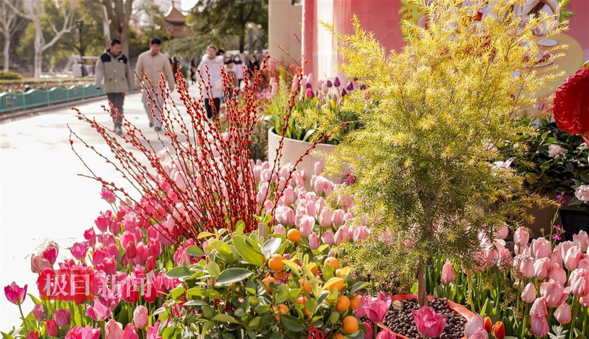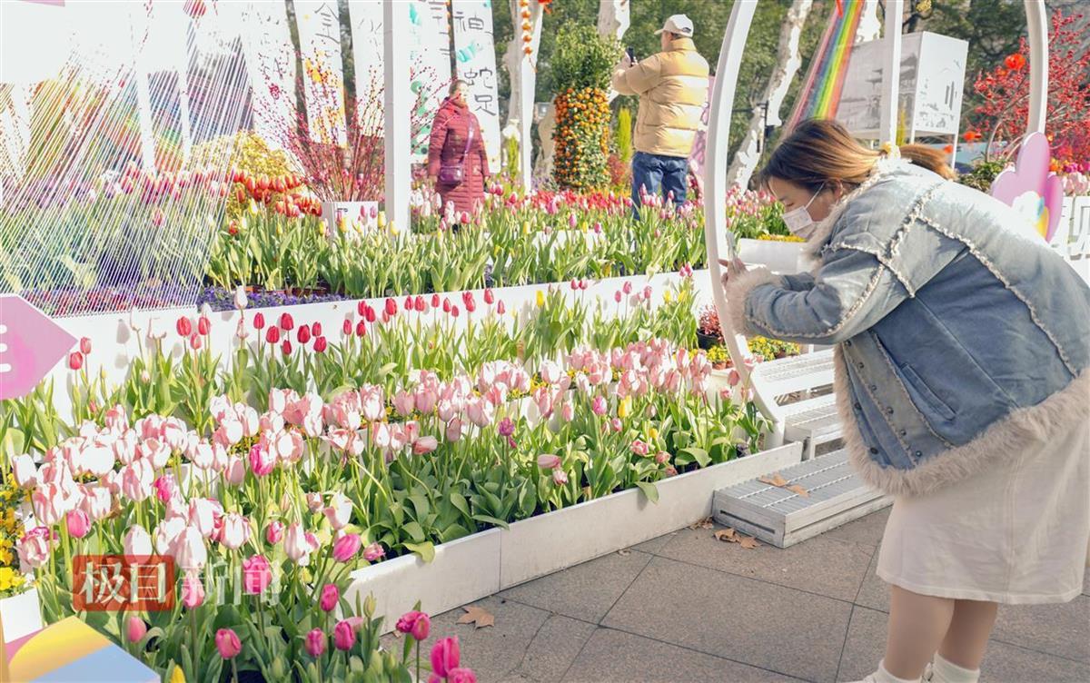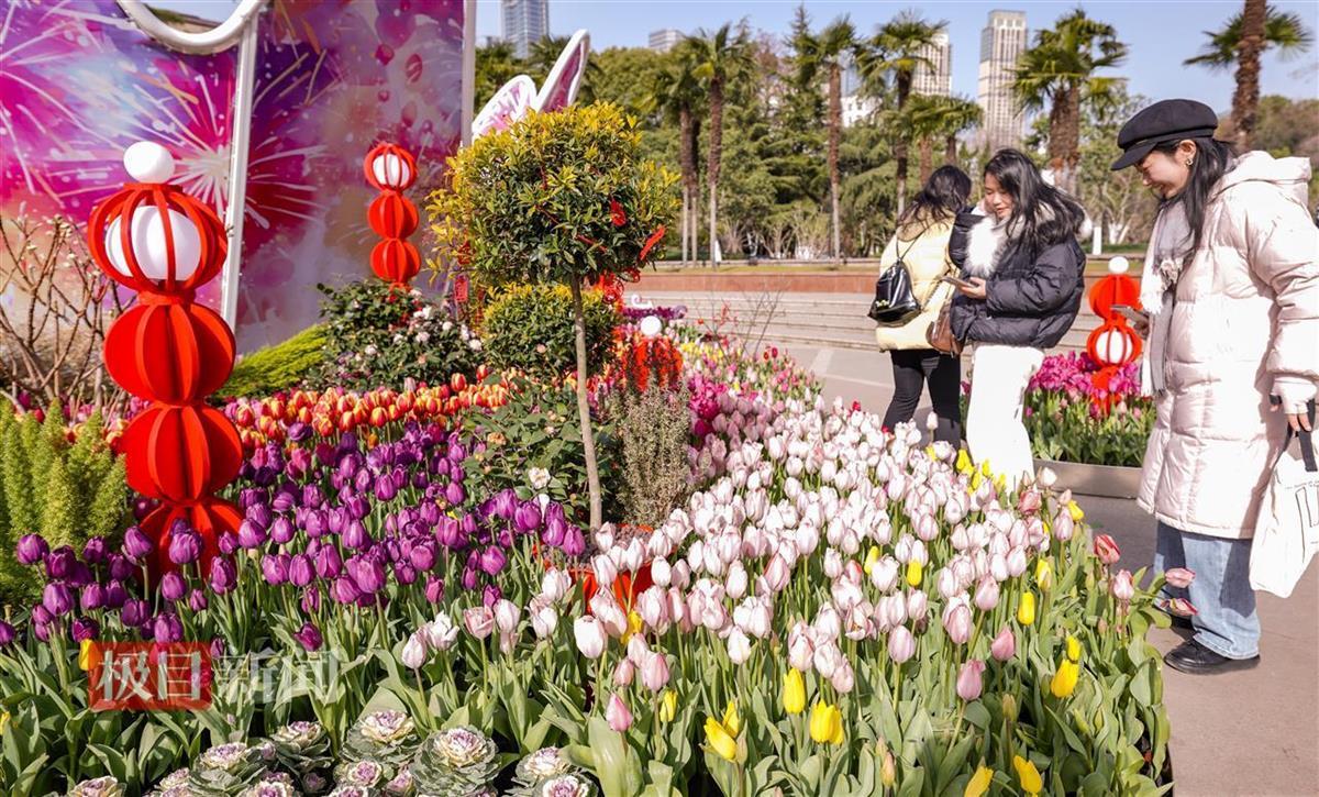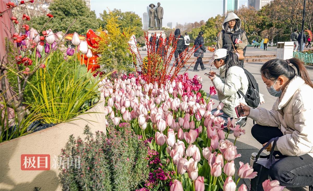 2月7日,市民游客纷纷踏足武汉中山公园,观赏郁金香迎春怒放的美景,感受新春的喜悦和勃勃生机。