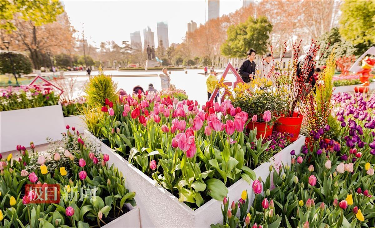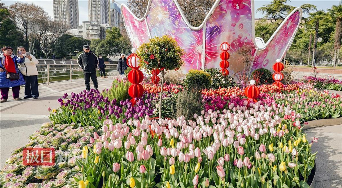 这个春节期间,汉口中山公园近20个品种、共4万株郁金香迎春开放,公园处处色彩缤纷、花香四溢,武汉人的春节浪漫多彩。