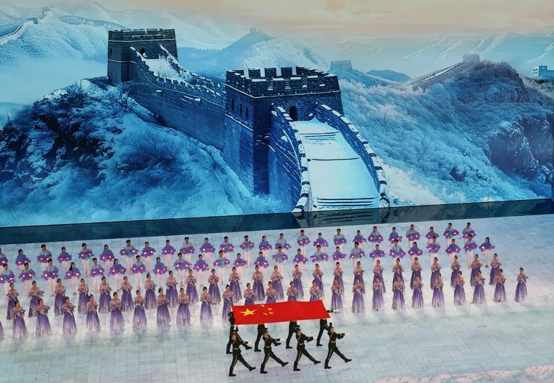2月7日,中华人民共和国国旗在开幕式上入场。新华社记者 陈益宸 摄