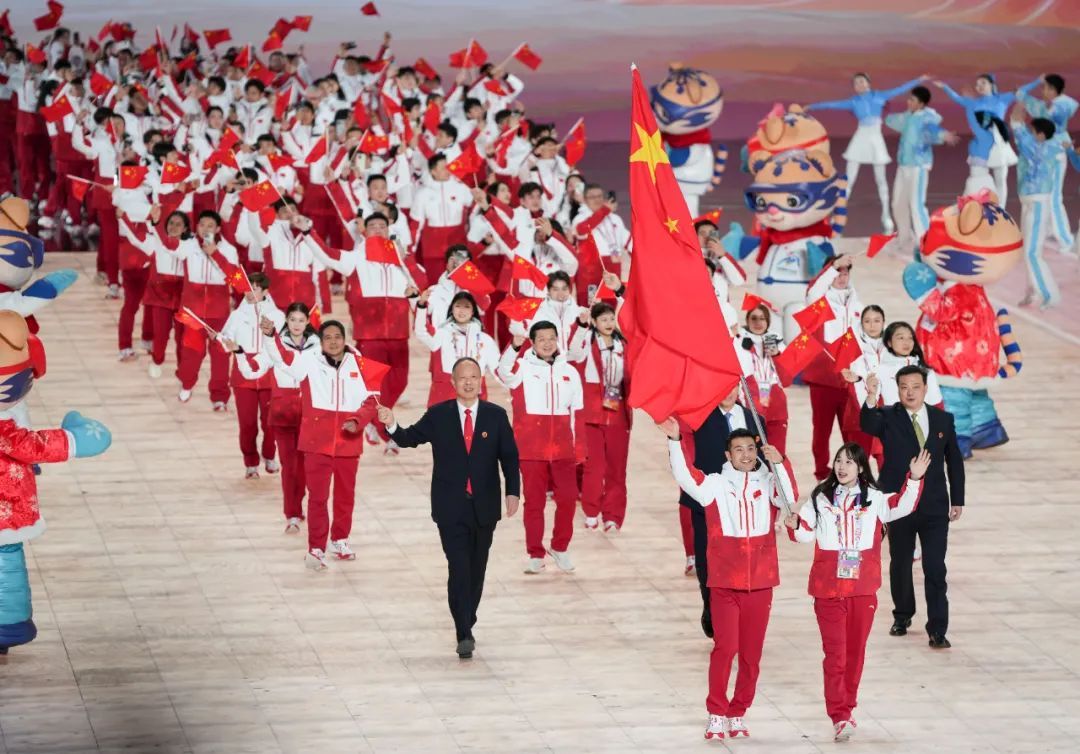 2月7日,中国体育代表团在开幕式上入场。新华社记者 杨磊 摄