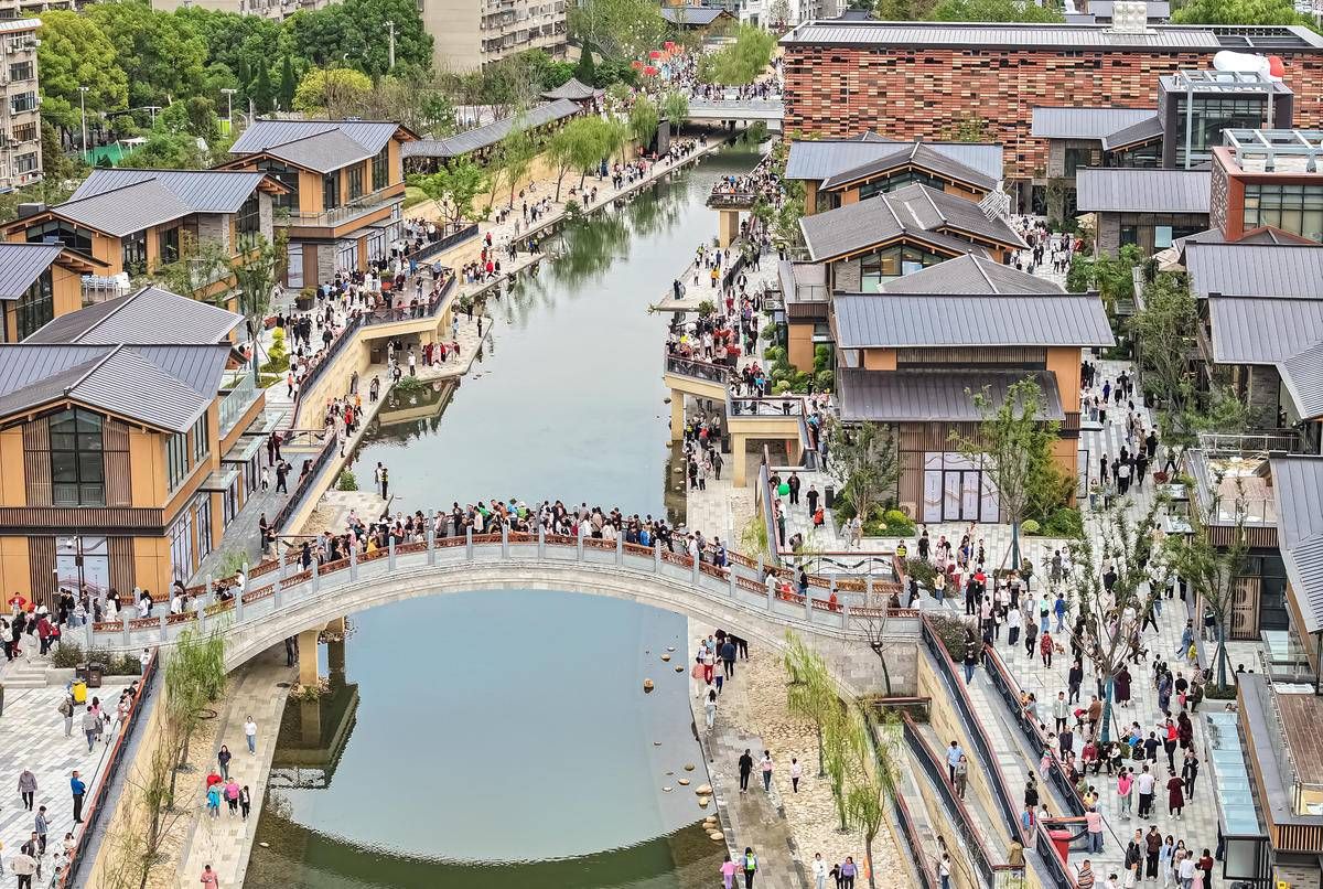 襄阳襄水街开街以来,吸引当地市民和外地游客前来打卡观赏美景。(湖北日报全媒记者 田悦 通讯员 谢勇 刘蒂尼 摄)