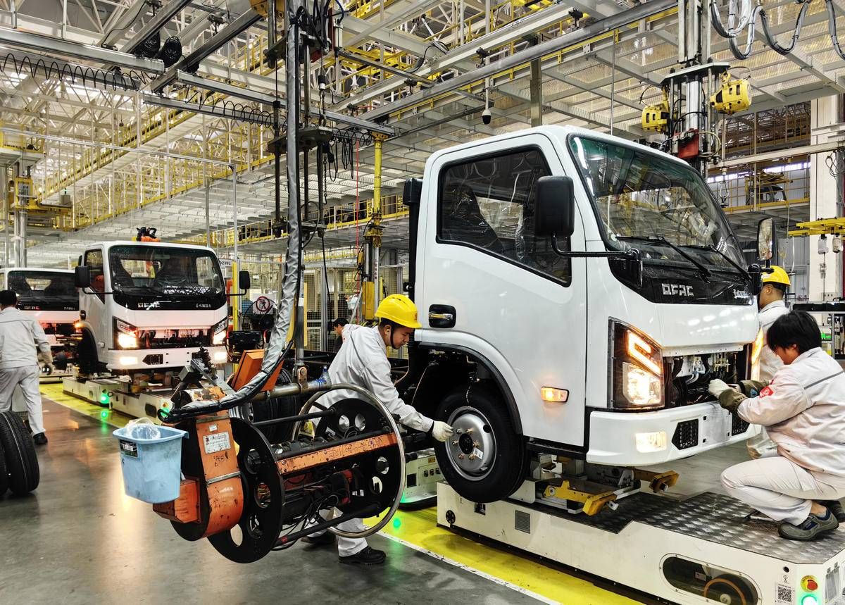 2024年12月4日,东风汽车股份有限公司员工在新能源商用车生产线上作业。(湖北日报全媒记者 田悦 通讯员 谢勇 摄)