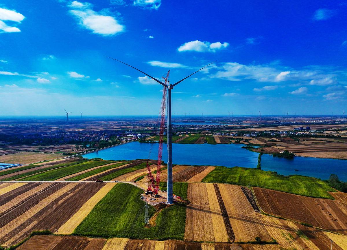 襄阳中节能25万千瓦风储一体化项目现场,施工人员进行风力发电机组吊装作业。襄阳市大力推进风能和太阳能等新能源开发利用,已初步形成风光水火多轮驱动的多元电力供应体系,能源结构布局更加优化。(湖北日报全媒记者 田悦 通讯员 谢勇 摄)