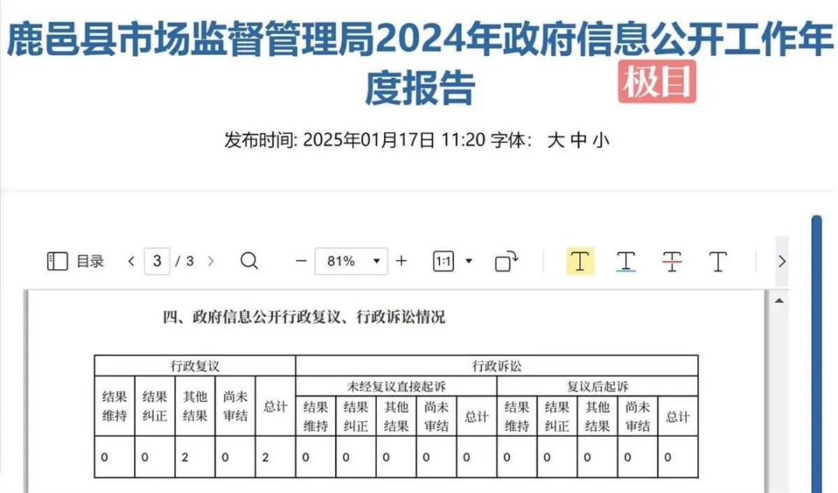 行政诉讼数据已更新(鹿邑县政府官网截图)