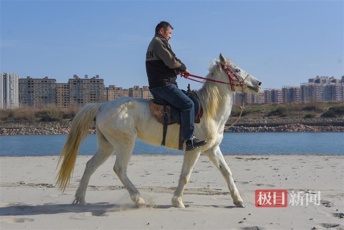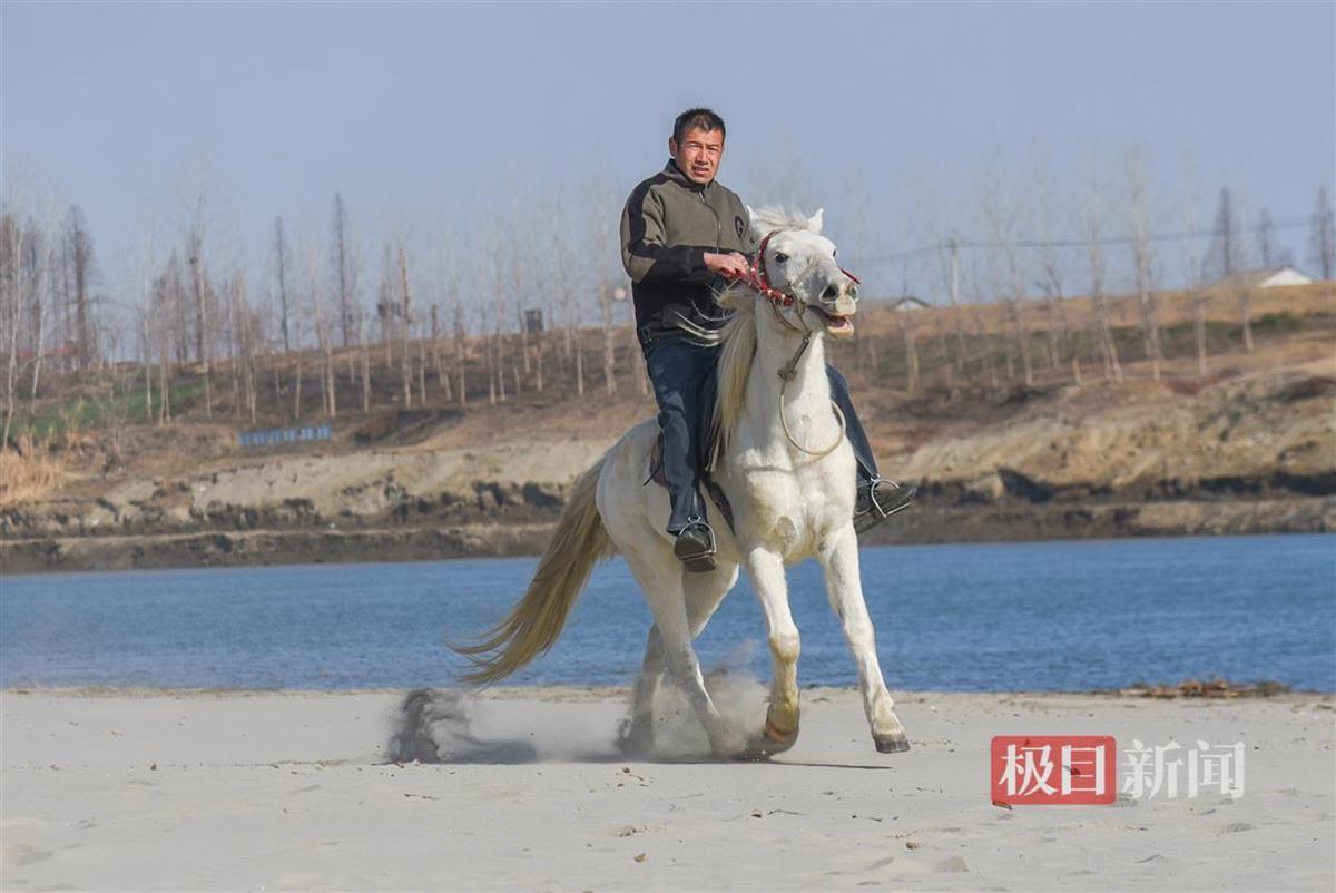 2月8日,依立拜骑着“白龙马”在湖北仙桃汉江边的沙滩驰骋