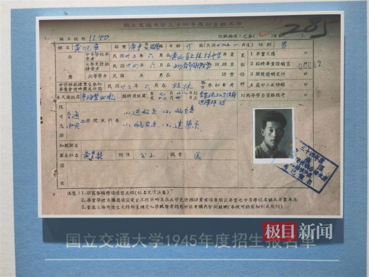 黄老报考交大时的报名单
