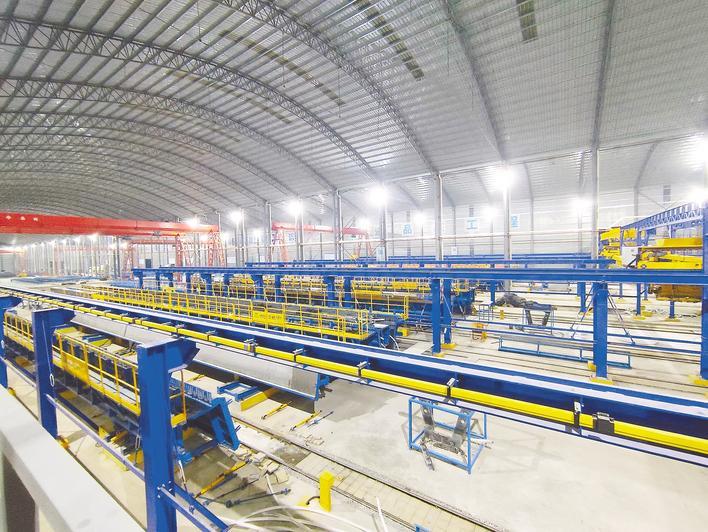 2月6日,咸宁市嘉鱼县潘家湾镇,占地210亩的中建三局汉南智慧梁厂刚复工就进入生产高峰,10条智能生产线马力全开,日产10榀箱梁。按桥面宽42米计算,能铺设桥面30米。中建三局项目总工罗赞彪介绍,箱梁生产有5道主要工序:绑扎钢筋、浇筑混凝土、养护、预应力施工和移梁。在汉南智慧梁厂,后面4道工序均已实现自动化、少人化。
