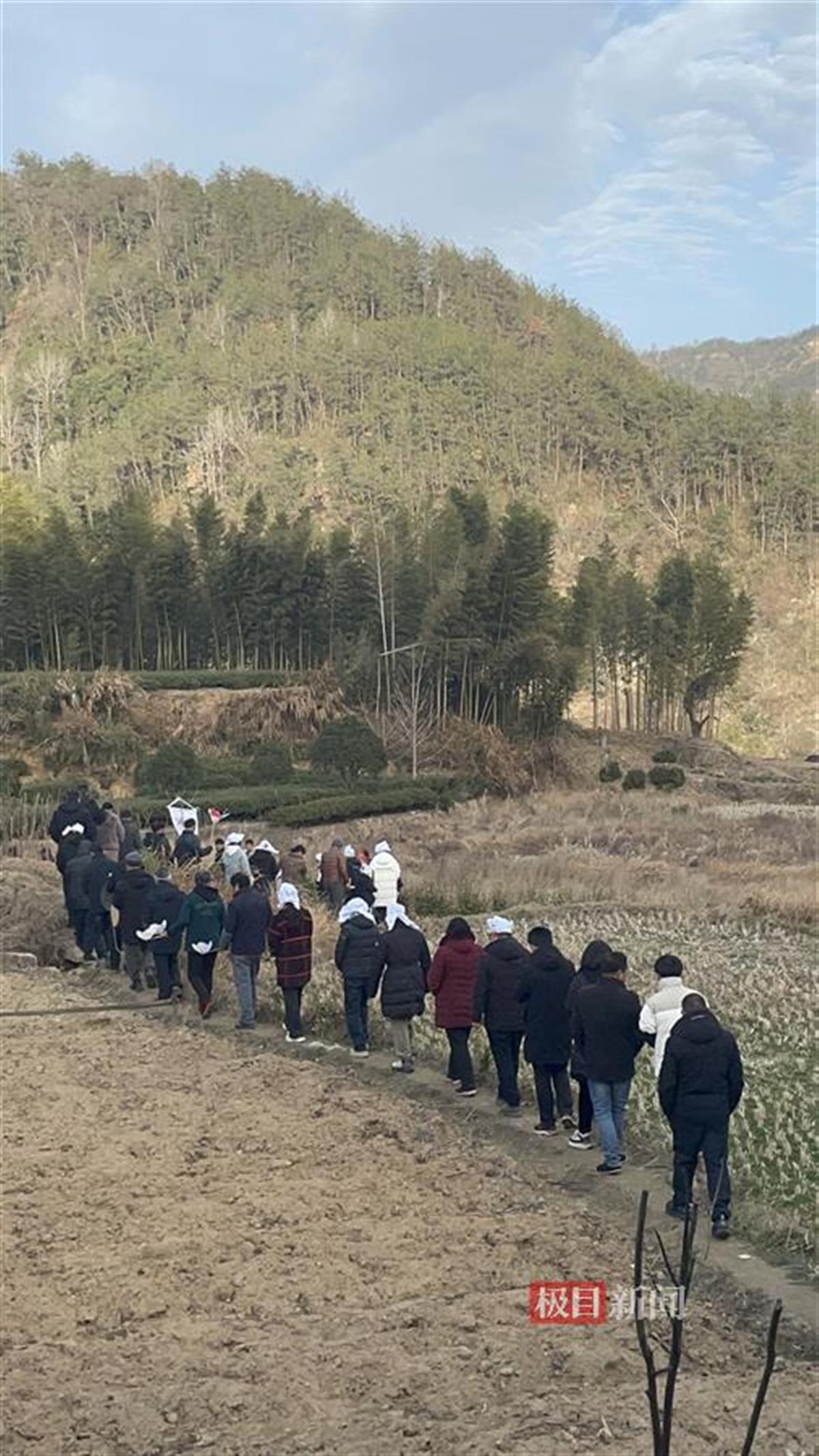 2月7日,一条长长的送葬队伍走在安徽安庆岳西县毛畈村田间。送葬队伍中不仅有王振华的亲属,还有他曾经帮助过的村民。谈起王振华,他们无一不是眼睛通红、深感可惜。