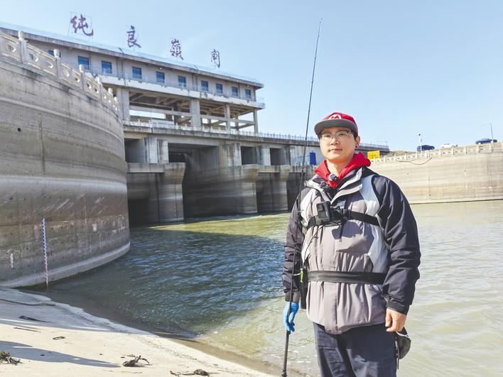 “烟波钓客”张呈勉站在救人的仙桃通顺河纯良岭水闸处。(湖北日报全媒记者 雷巍巍 摄)