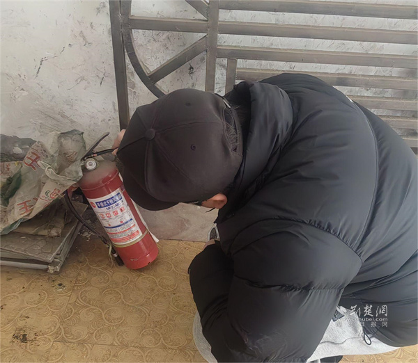 检查楼栋灭火器。 通讯员供图