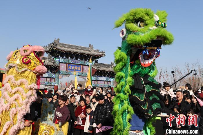 2月9日,霸州市胜芳古镇花会活动狮子会表演现场。 贾珺 摄