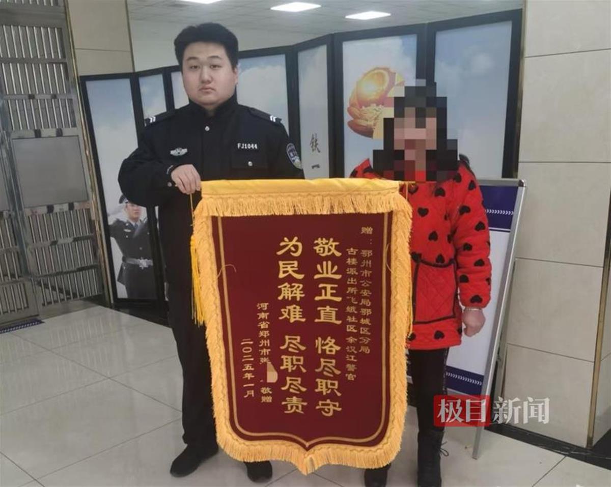 1月16日下午,河南省郑州市的张先生委托恩人周女士,将一面印有“敬业正直、恪尽职守;为民解难、尽职尽责”的锦旗送到鄂州市公安局鄂城区分局古楼派出所。