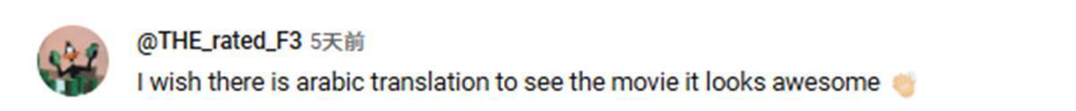 “我希望能通过阿拉伯语翻译来看这部电影,它看起来棒极了。”