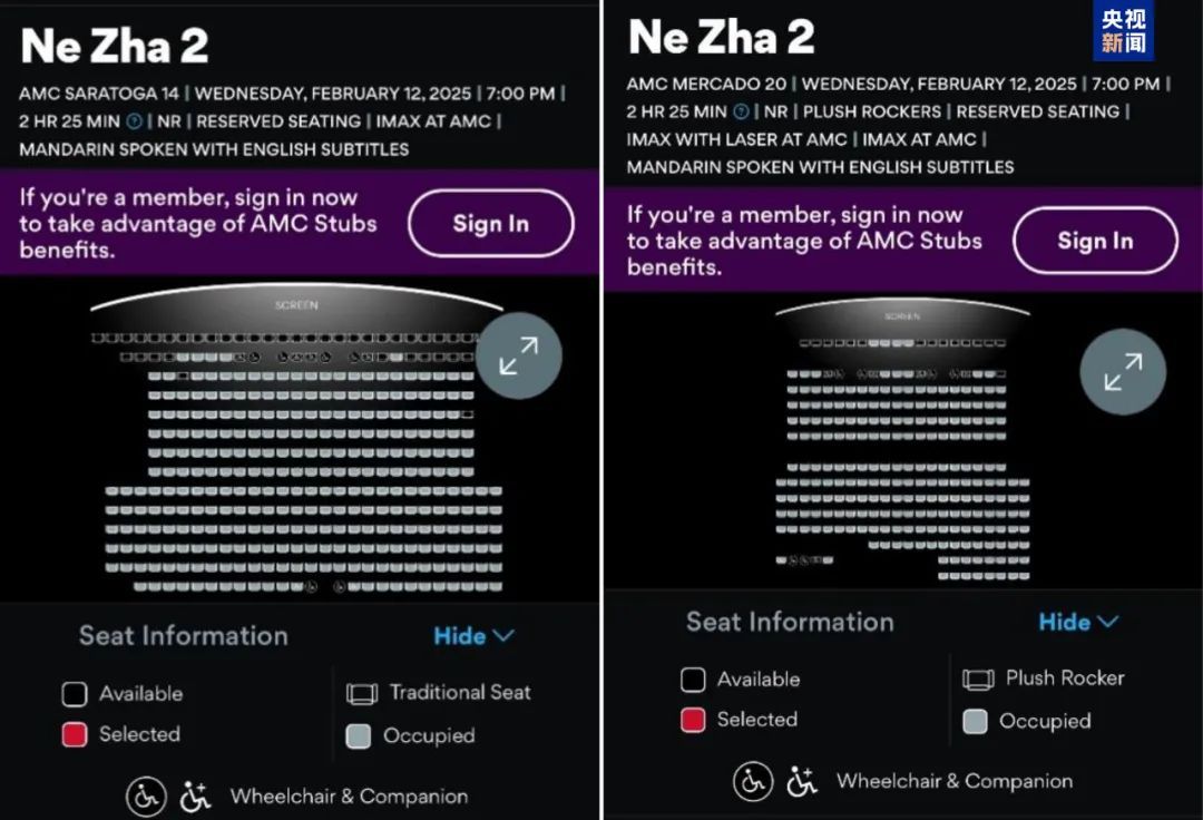 《哪吒2》将于2月12日起于北美地区开启特别制式点映,2月14日正式上映。多家影院在线售票座位图显示,《哪吒2》的提前点映以及正式上映当日的热门场次已经售罄。