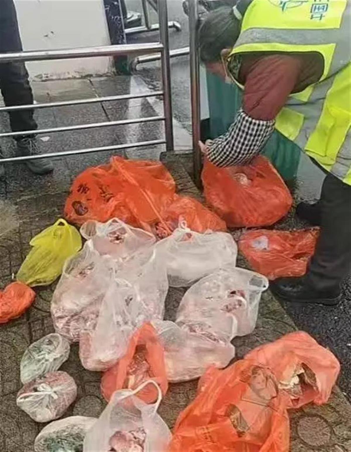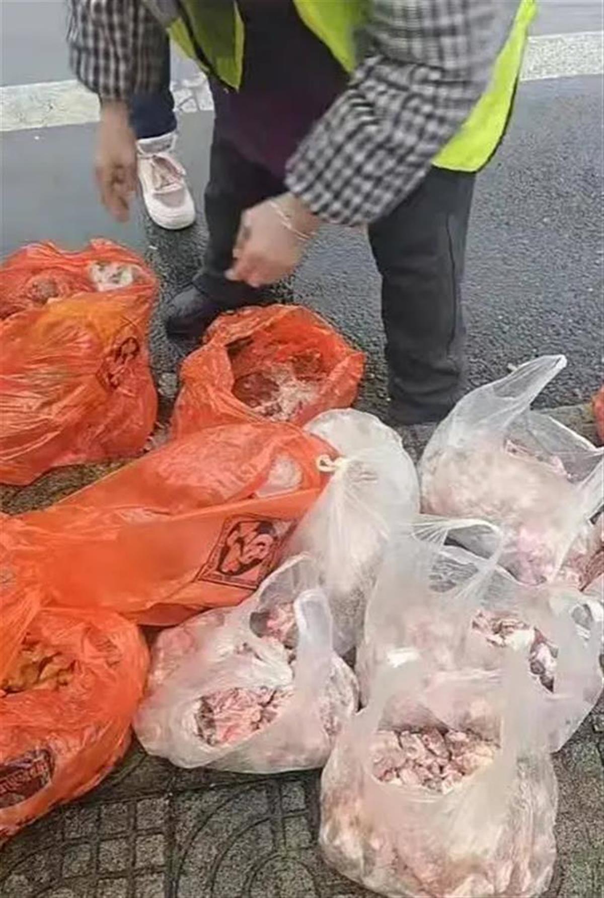 视频显示,被扔的食物里,有生鲜肉类,有已经烹饪好的熟食,还有炸得金黄酥脆的小酥肉和带鱼,保守估计年货总重量有三四十斤,价值上千元。