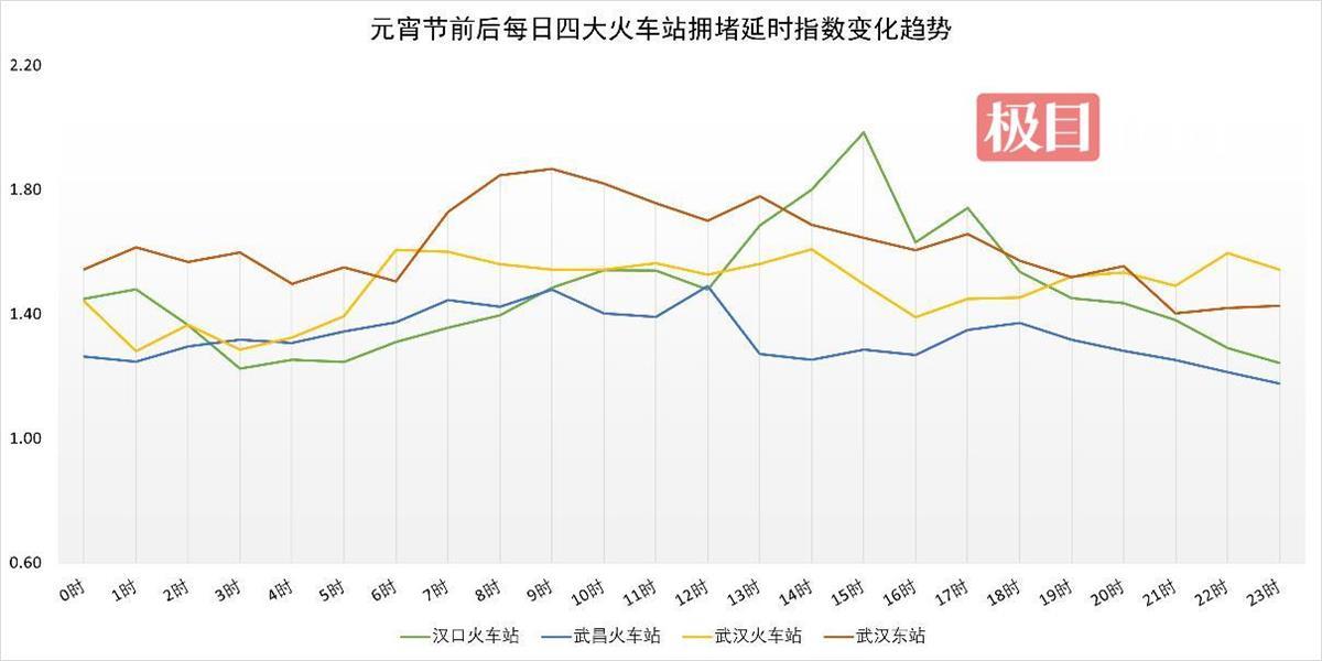 与此同时,根据交通运行规律“四大火车站”将在元宵节前后迎来大面积返程客流,预计2月11日(周二)至16日(周日)四大火车站客流量将达近期峰值;下周一至周日,武汉市高校陆续开学,火车站周边道路继续保持饱和状态,11时至20时为出行集中时段,周边道路可能出现通行缓慢的情况。