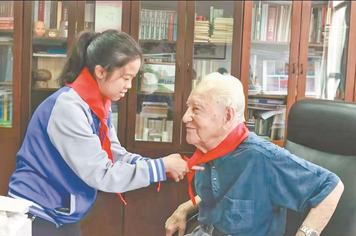 值得一提的是,2020年9月,利用到武汉研学的机会,王靓欢还曾到访过黄旭华院士的办公室。“黄爷爷亲切地接待了我们,跟我们亲切交谈。我给黄爷爷戴上红领巾后,他非常高兴,笑得很开心。”