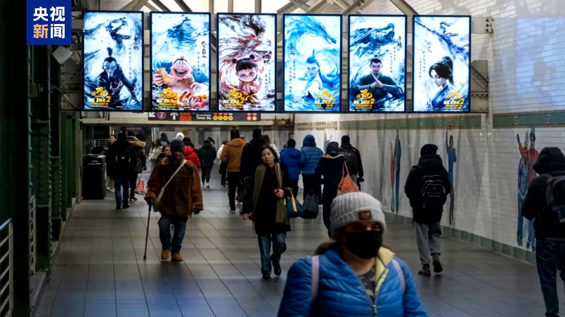 《哪吒2》的宣传片还登陆了纽约时报广场大屏幕。在纽约多个繁忙的地铁站内,《哪吒2》的海报亮相电子屏幕。