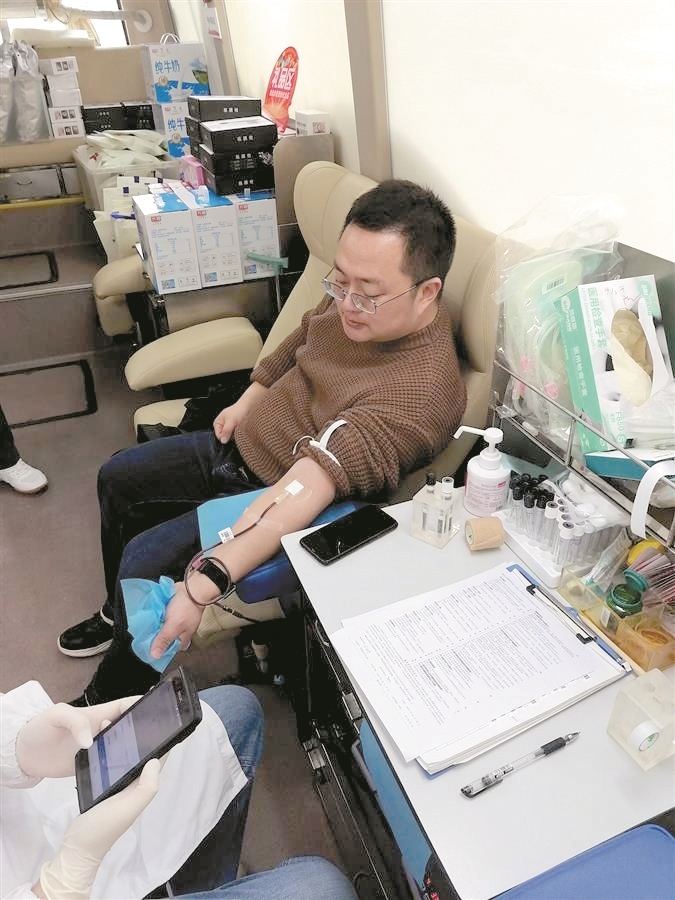 刘翔宇老师挽袖献血 受访者供图