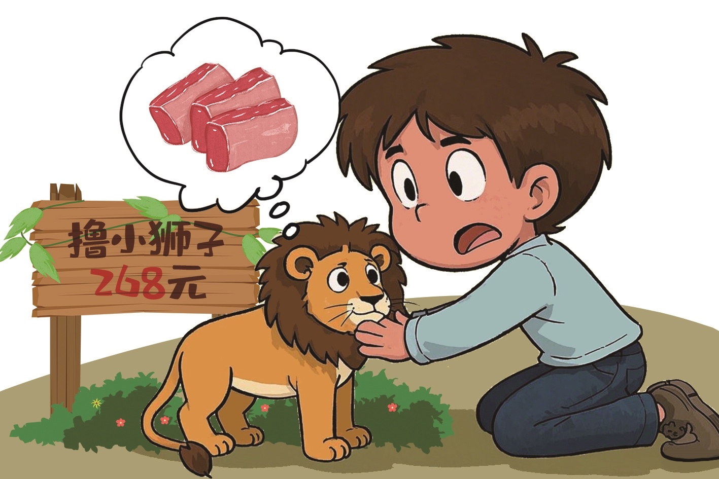 动物园工作人员表示,游客和狮子等动物接触时,一旁有专业饲养员看护,能确保人和动物的安全。但野生动物不是家养宠物,岂是一句“安全”就可以撸的?