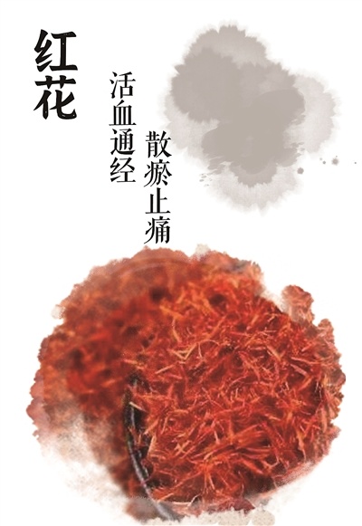 血竭可以说是活血圣品,别称“麒麟竭”,《本草纲目》称之“木之脂液,如人之膏血”。红花则是很多养生达人十分熟悉的中药材,可以活血通经,散瘀止痛,但红花少用可养血,多用则破血,日常使用要注意适量。