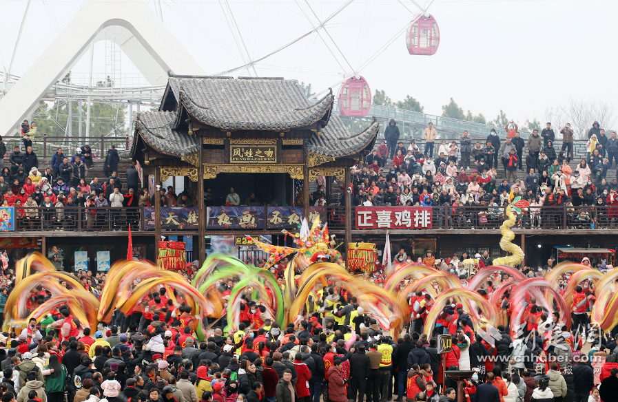 荆楚网(湖北日报网)讯(通讯员 王红红、李笠夫、商迪)“金龙祈福、风调雨顺、国泰民安!”2月11日,位于武汉市新洲区凤凰镇凤娃古寨景区中鼓声咚咚、唢呐声声,人潮如织热闹非凡。在龙灯群舞中,国网武汉供电公司“鄂电红马甲”们的身影穿插在人群中,全力护航元宵节龙灯巡游及景区用电,让游客们共庆佳节乐团圆。