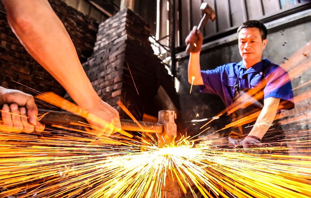 龙水五金邓家刀五金锻打技艺。新华社发(瞿波摄)