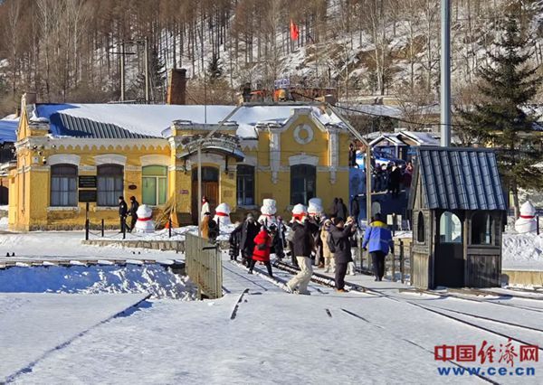 1月15日,游客在黑龙江省牡丹江市海林市中东铁路博物馆拍照留念。中国经济网 王婉君/摄