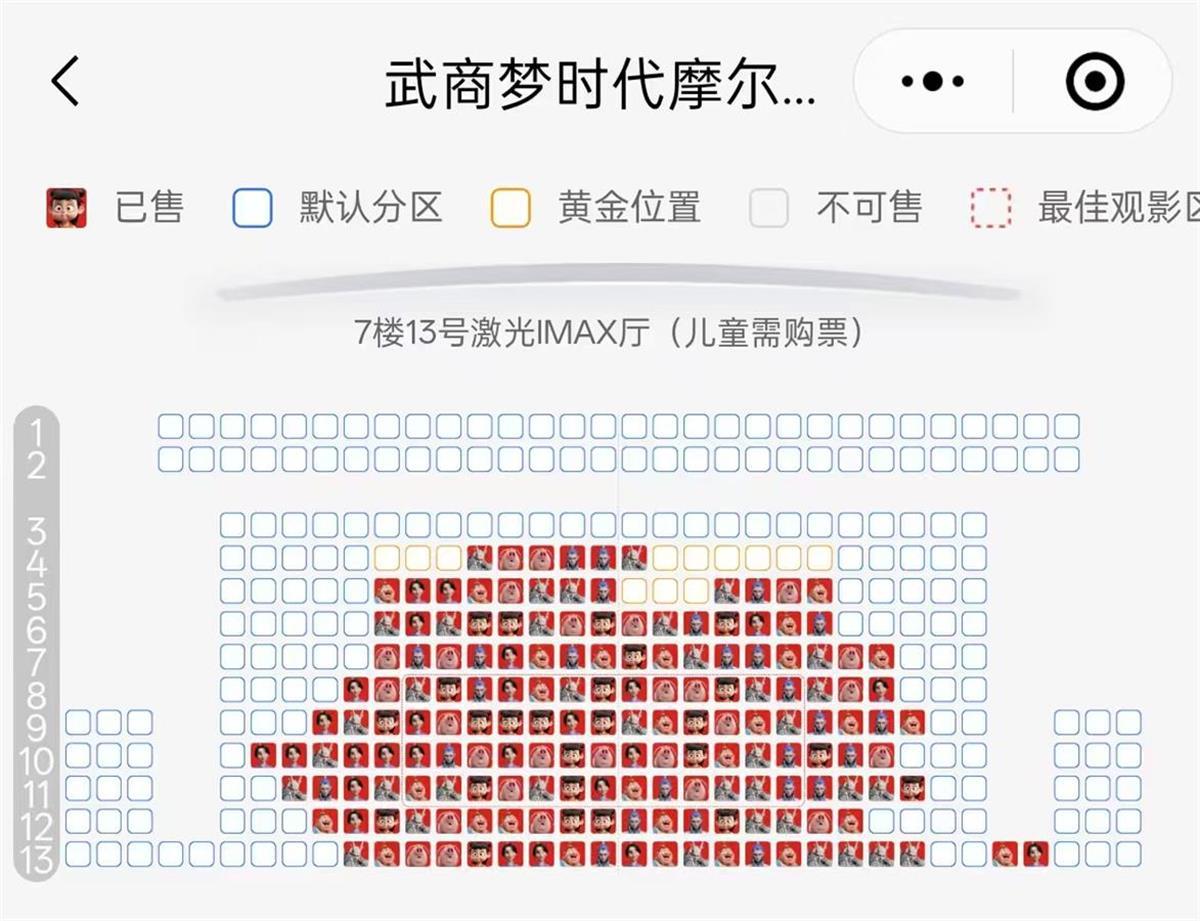 随后,记者在购票平台查询武汉2月12日的影院售票情况,发现多个影院的黄金档座位已售出近80%。
