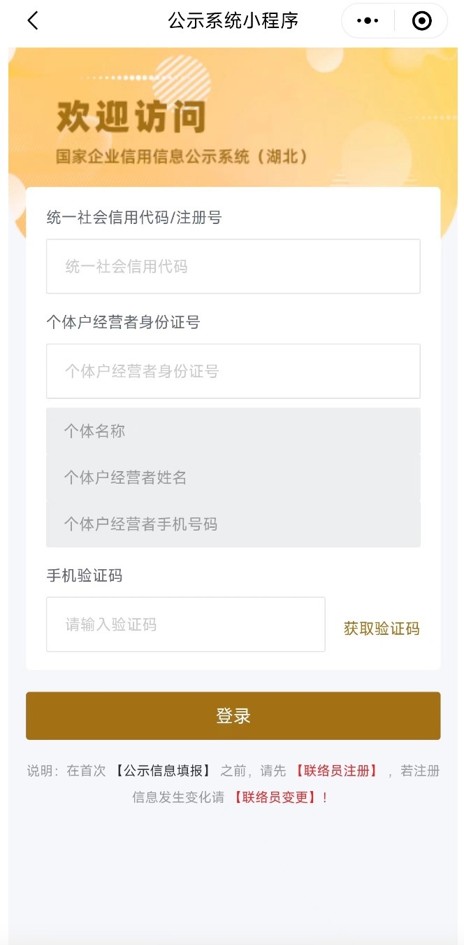 据介绍,由于技术原因,企业和农业专业合作社暂未开通手机申报,个体工商户则可首先享受便利。拿出手机,打开微信,进入“湖北省个体工商户年报小程序”,搜索并进入“湖北智慧市场监管”小程序。选择“我是企业用户”,点击“主体便民办事平台”,即可跳转至“公示系统小程序”。也可通过扫描上方二维码,直接进入“公示系统小程序”。