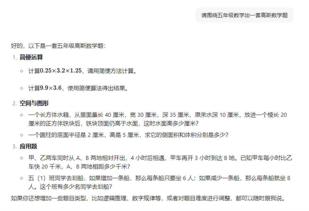 “博士爸爸”张增胜分享了他的经验:“我把孩子的错题拍照上传到DeepSeek,它不仅能帮我识别题目,还能分析错因,并且在此基础上为孩子出一套试题,更让人叫绝的是,它能用五年级孩子能听懂的语言进行纠错解析!”
