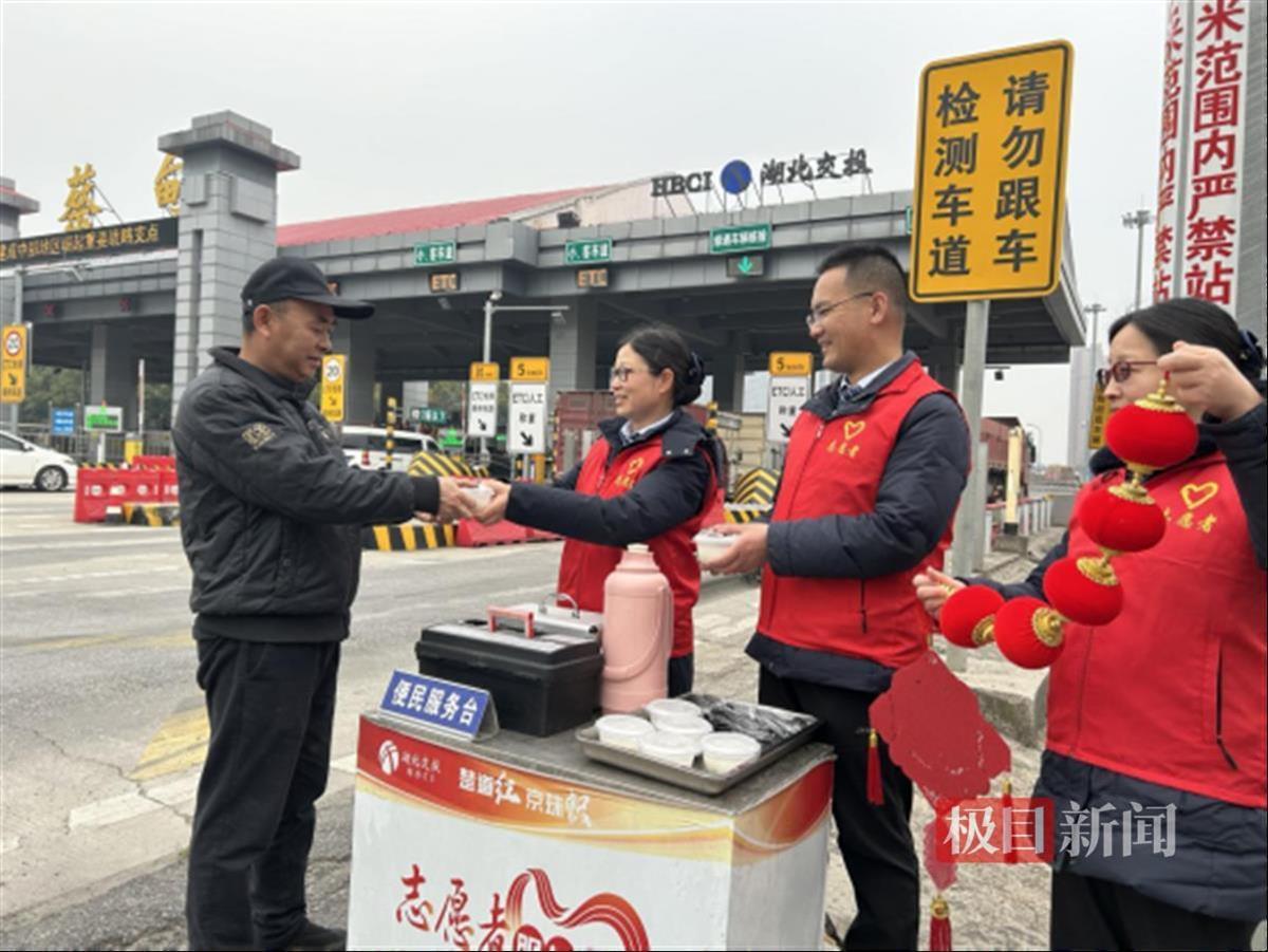2月12日,京港澳高速蔡甸收费站向日葵志愿班组志愿者,面向来往的司乘赠送汤圆,为其送上祝福。“我们经常在外,哪里能吃到汤圆,实在太感谢了。”司机何先生端着汤圆说道。