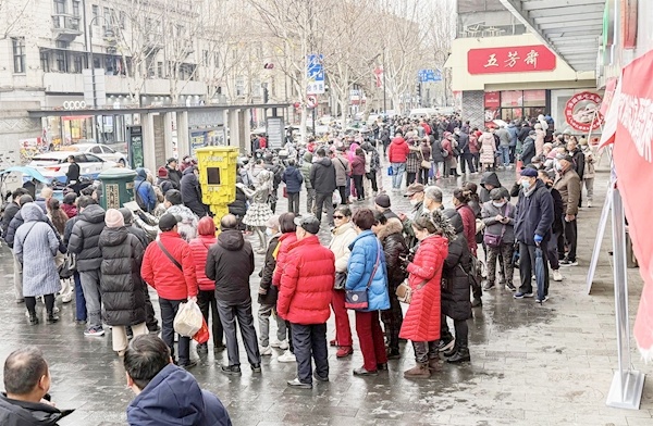 元宵节当天,五芳斋总店门口排起长龙 摄影:楚天都市报极目新闻记者李辉