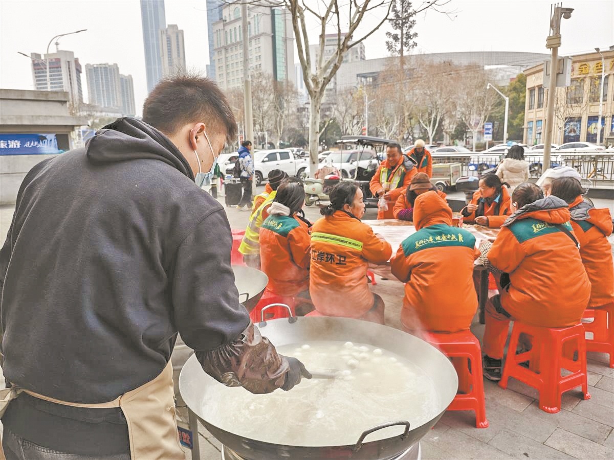 自2015年起,奇君甜品店坚持在每年的元宵节,邀请环卫工人们到店免费品尝自家手工制作的汤圆,这一“传统”已经延续了11年。店主祝文奇说,希望通过这一方式,为“城市美容师”们送上节日的专属关怀。