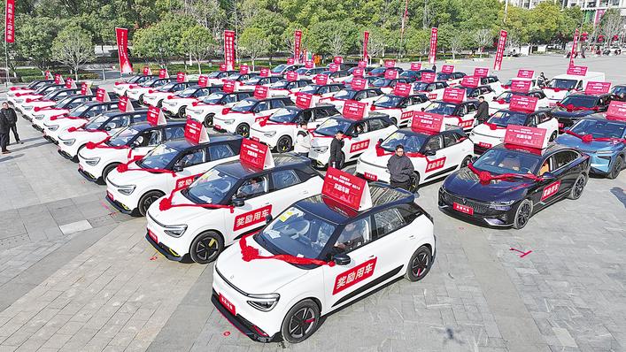 2月10日,襄阳高新区召开持续“转作风 抓项目 促转型”动员大会,现场奖励优秀企业和项目63辆汽车,总价值567万元。 (湖北日报全媒记者 汪璐 通讯员 陈建 陆定琴 摄)
