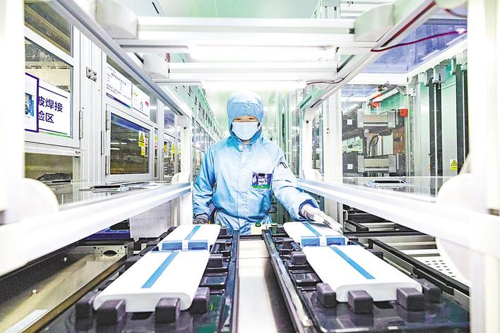 2月10日,在楚能新能源孝感锂电池产业园电芯二工厂智能化车间内,工作人员正在查看设备运行情况。 (湖北日报全媒记者 倪娜 通讯员 龚凌寒 摄)