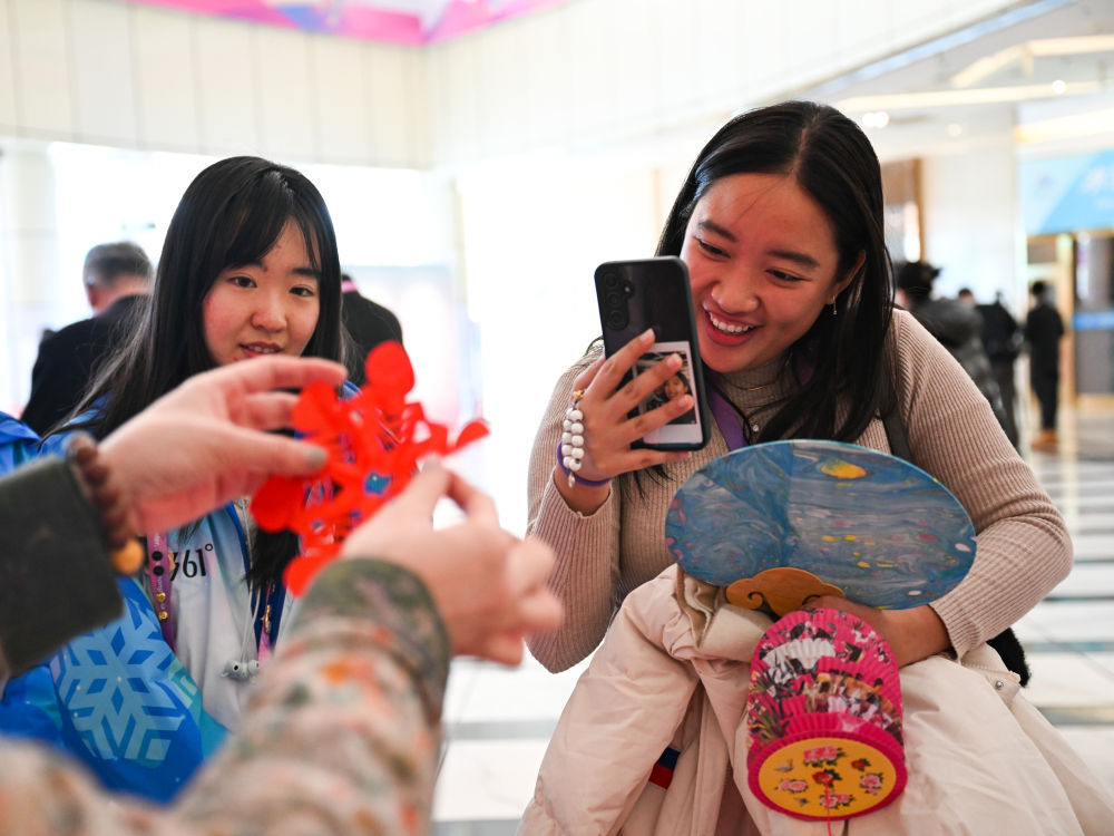 冰雪世界热热闹闹,运动员村喜气洋洋。在运动员村一楼大厅,以元宵节为主题的非遗展演吸引不少运动员和随队官员驻足体验。冰版画、方正剪纸、龙头蜈蚣风筝制作等黑龙江特色非遗,与蛇年生肖、亚冬会吉祥物、雪花等形象巧妙结合,让来自各地的宾客了解中华传统文化,带走一份珍贵记忆。