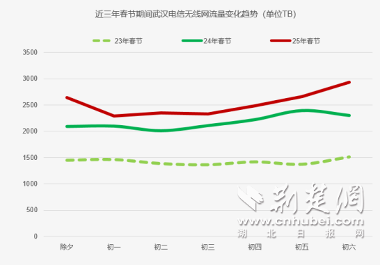中国电信网络大数据及4/5G基站的实时监测数据显示,春节期间,武汉市电信用户语音话务量同比增长12.87%,数据流量同比增长16.03%,单日峰值流量高达2935TB,创近三年新高。这一庞大的数字化图景不仅见证了武汉的强势复苏,背后更是中国电信武汉分公司(简称武汉电信)在春节期间强大的网络保障。