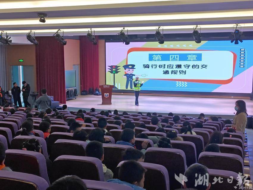 “这是安全头盔!”“答对了!”交通安全出行棋游戏区域热闹非凡,学生们分组进行游戏,通过摇骰子前进并回答交通安全问题来争夺胜利。在游戏中,学生们不仅巩固了交通安全知识,还学到夜间穿着黄色衣服可提高可见性等实用交通安全技巧。除了室外“游园”互动,交警小姐姐们还为学生们带来一堂生动的交通安全宣传课,使学生们对交通安全有了更全面、更深入地了解。