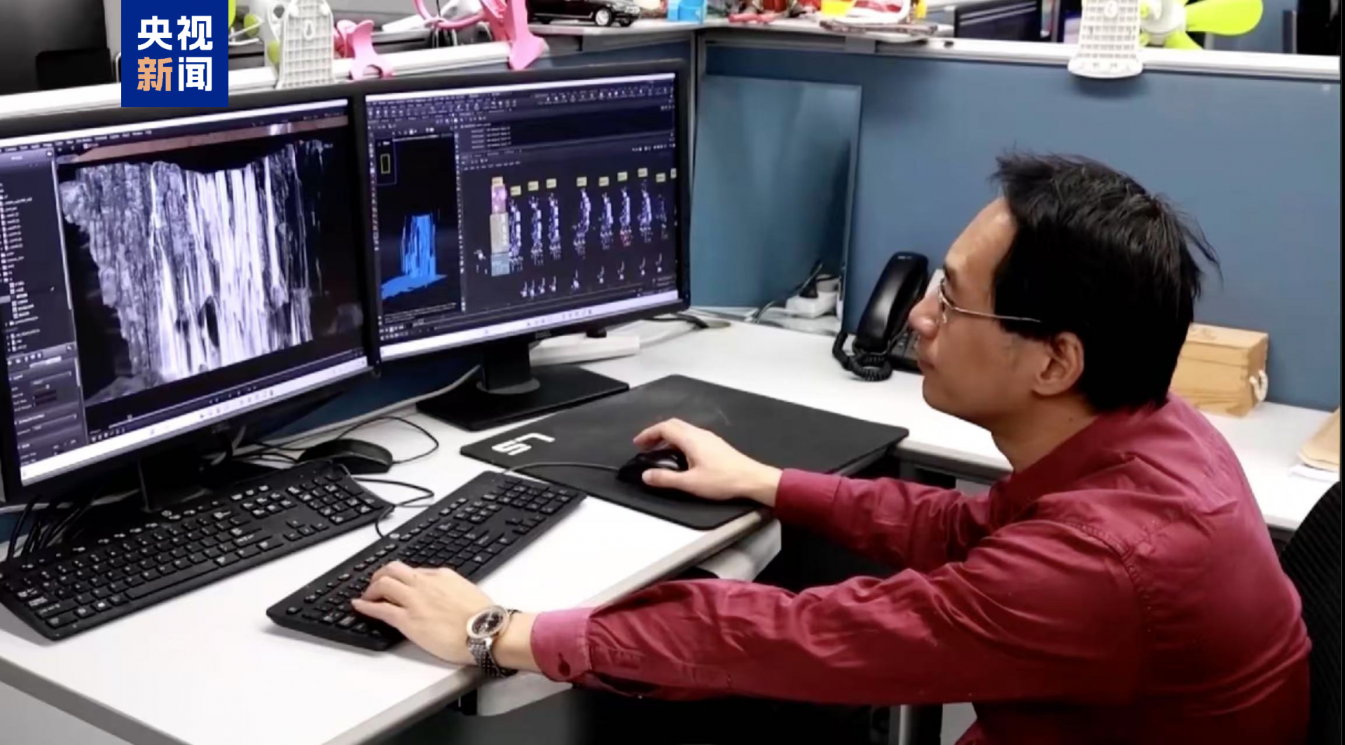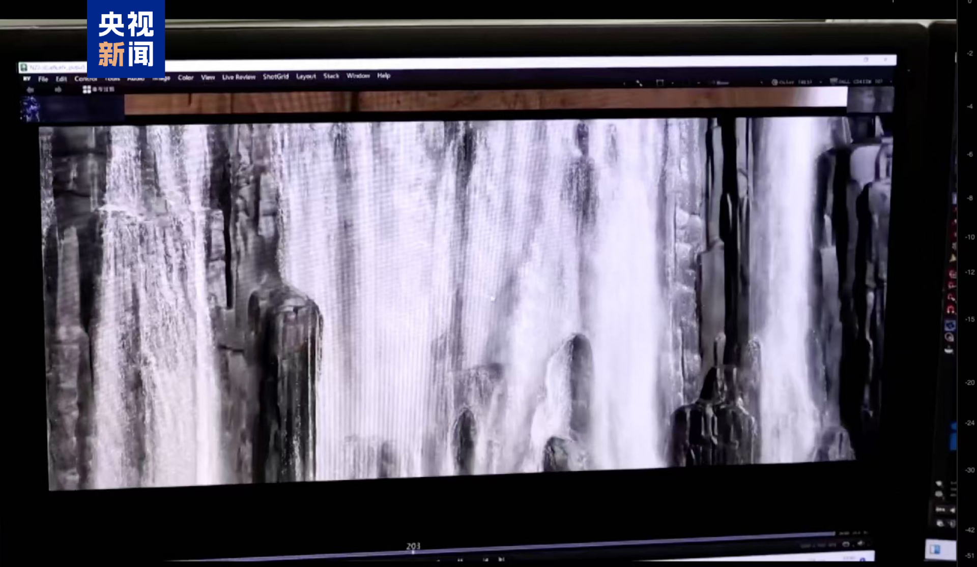团队负责人汪巍蔚介绍,这50台解算高性能工作站,每帧渲染32小时,光渲染时长就高达15天。“不仅要求规模宏大,而且特效效果要有节奏、韵律美,要符合东方瀑布的美感。”