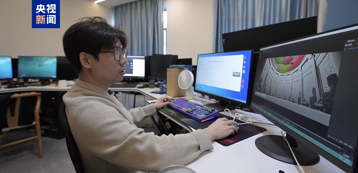 △幻影疯爆团队成员文崇旭展示玉虚宫效果图