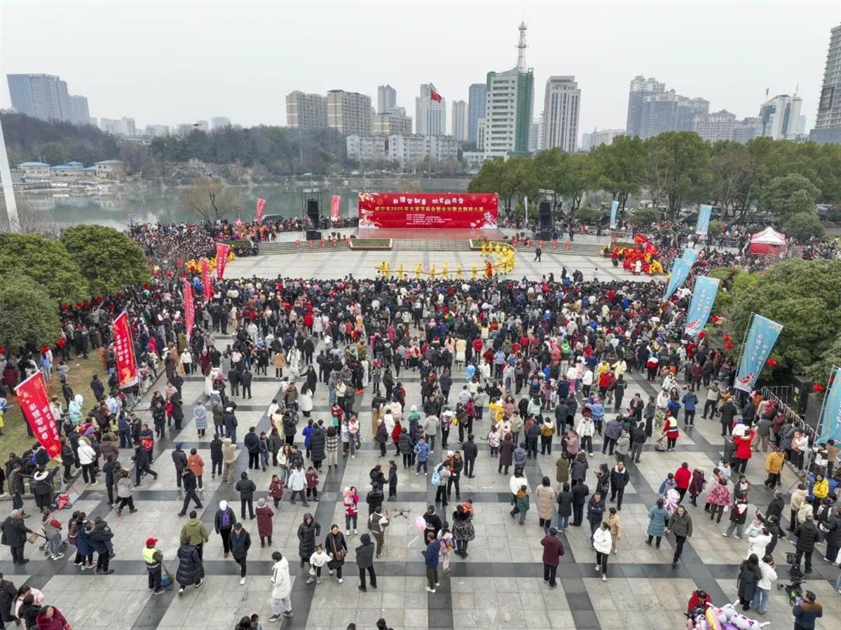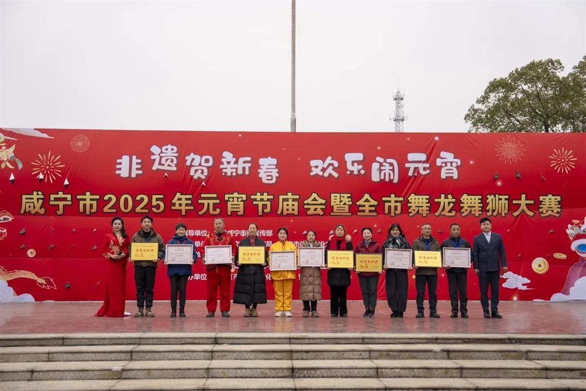 2025年2月12日(农历正月十五),咸宁市人民广场披上了节日的盛装,“非遗贺新春 欢乐闹元宵”咸宁市2025年元宵节庙会暨全市舞龙舞狮大赛的盛大开幕,吸引数万名游客观看。活动当天,来自咸宁市直湖北咸水科技舞龙队及咸安、嘉鱼、赤壁、通城、崇阳、通山等六个县市区的舞龙舞狮队伍齐聚一堂,身着华丽服饰,手执长龙彩狮,准备为观众带来一场视觉与文化的双重盛宴。现场还吸引了众多外国友人的参与和观赏。