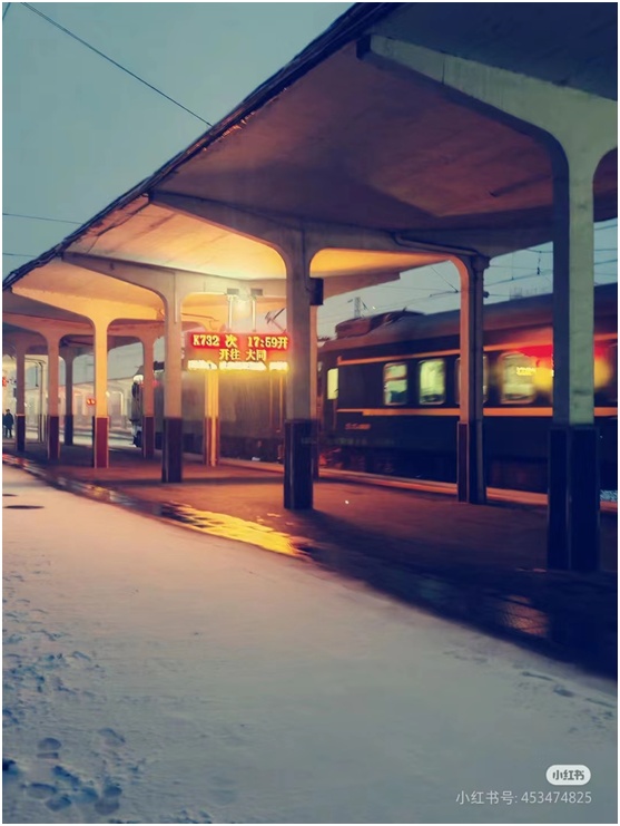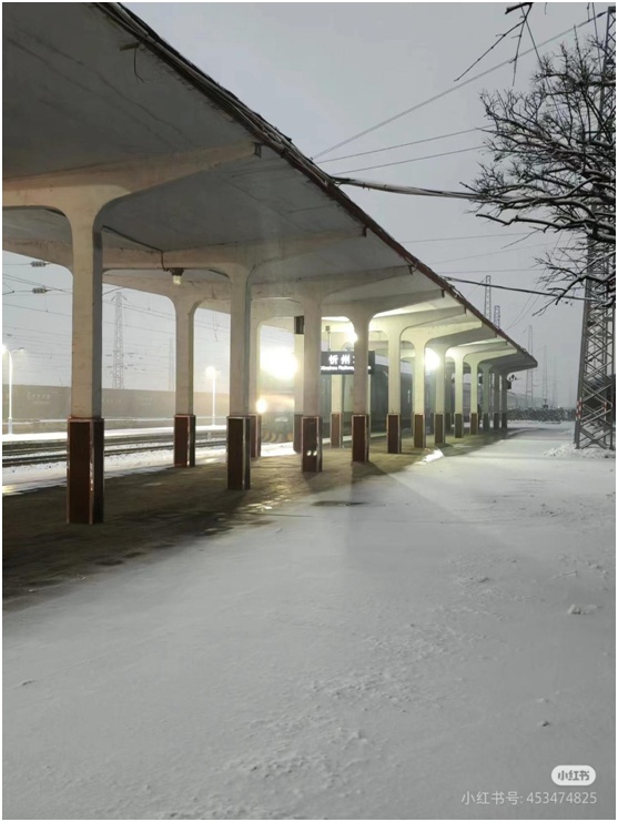 这是我在忻州站迎来的首场瑞雪,大雪纷纷扬扬,掩映了列车临近的轮廓,也模糊了旅人归家的模样。我的铁路画卷,亦在这白茫茫的画纸上缓缓展开。
