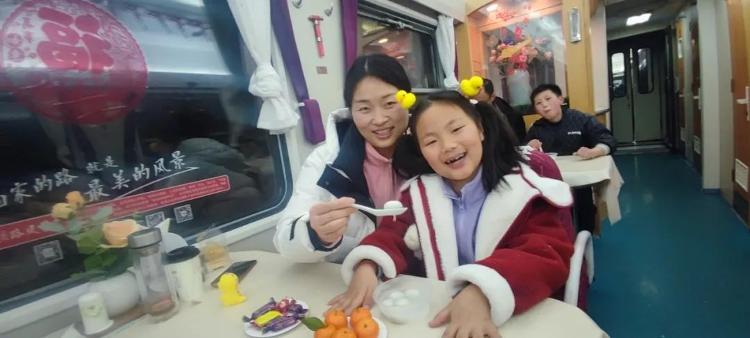 C6404次列车的工作人员为旅客准备了热气腾腾的元宵。一颗颗圆润饱满的元宵,软糯中包裹着甜甜的馅料,恰似满满的祝福。
